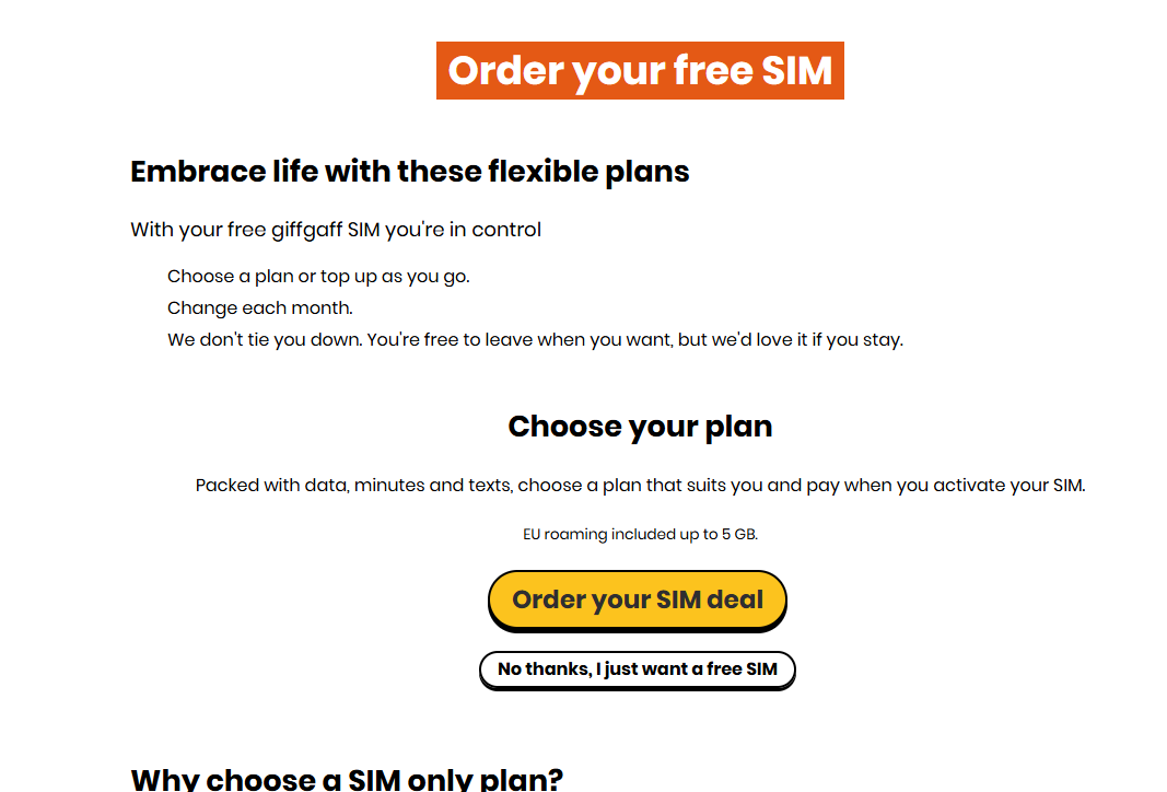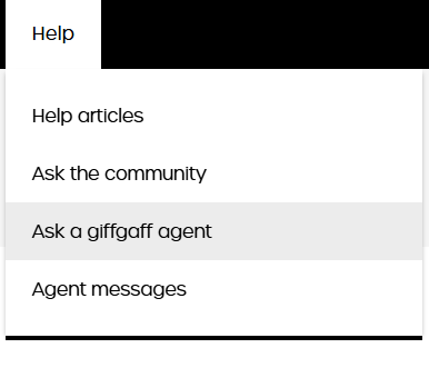 - 登录 Giffgaff 官网或 App,点击 Help。