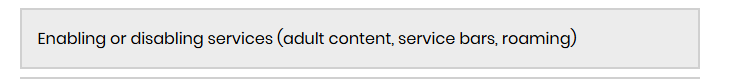 - 在分类中找到 Enabling or disabling services (adult content, service bars, roaming)。